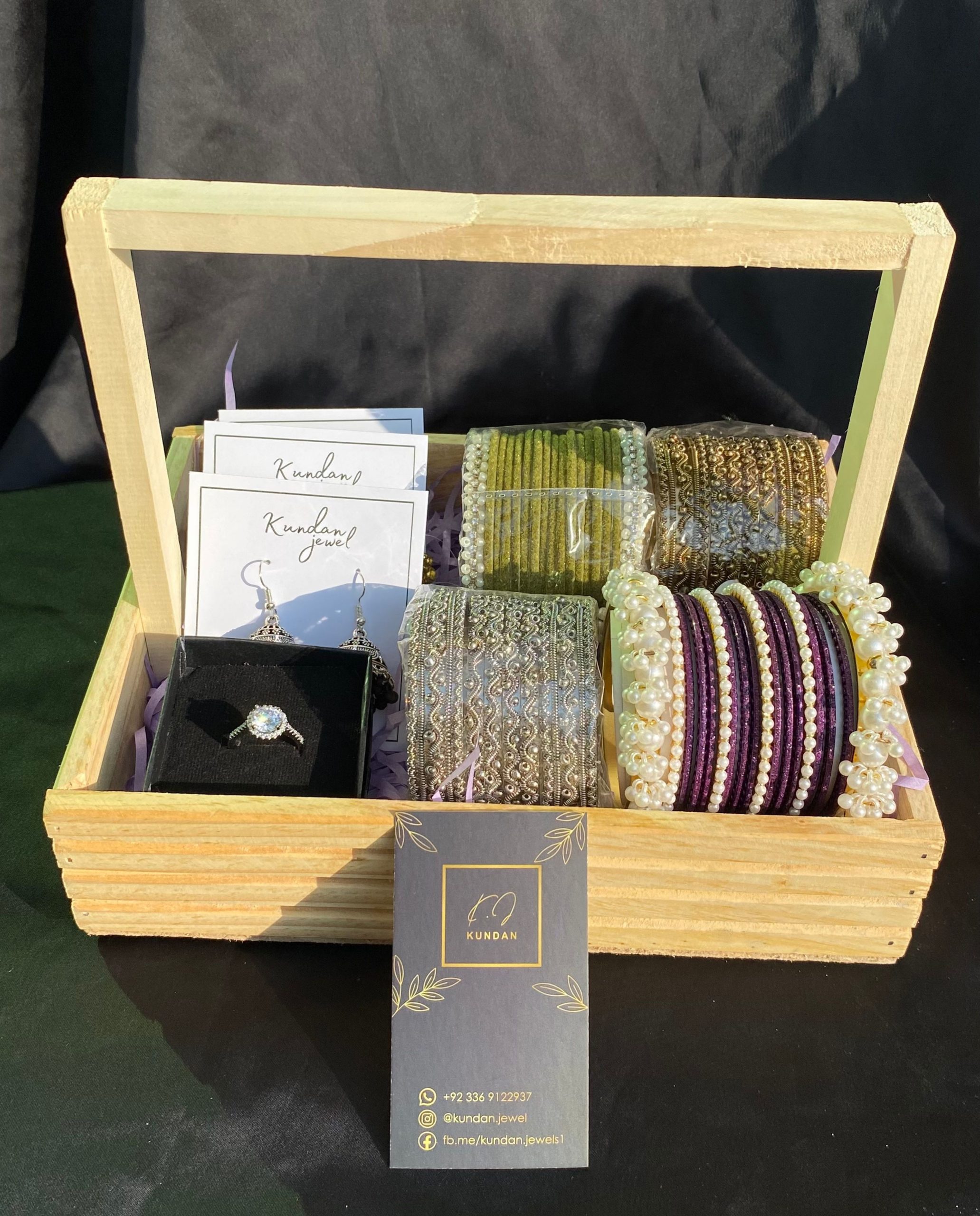 A stylish assortment of ethnic accessories including oxidised bangles, colorful metal and glass bangles, jhumkas, and a zircon ring — perfect for adding charm to any traditional outfit: