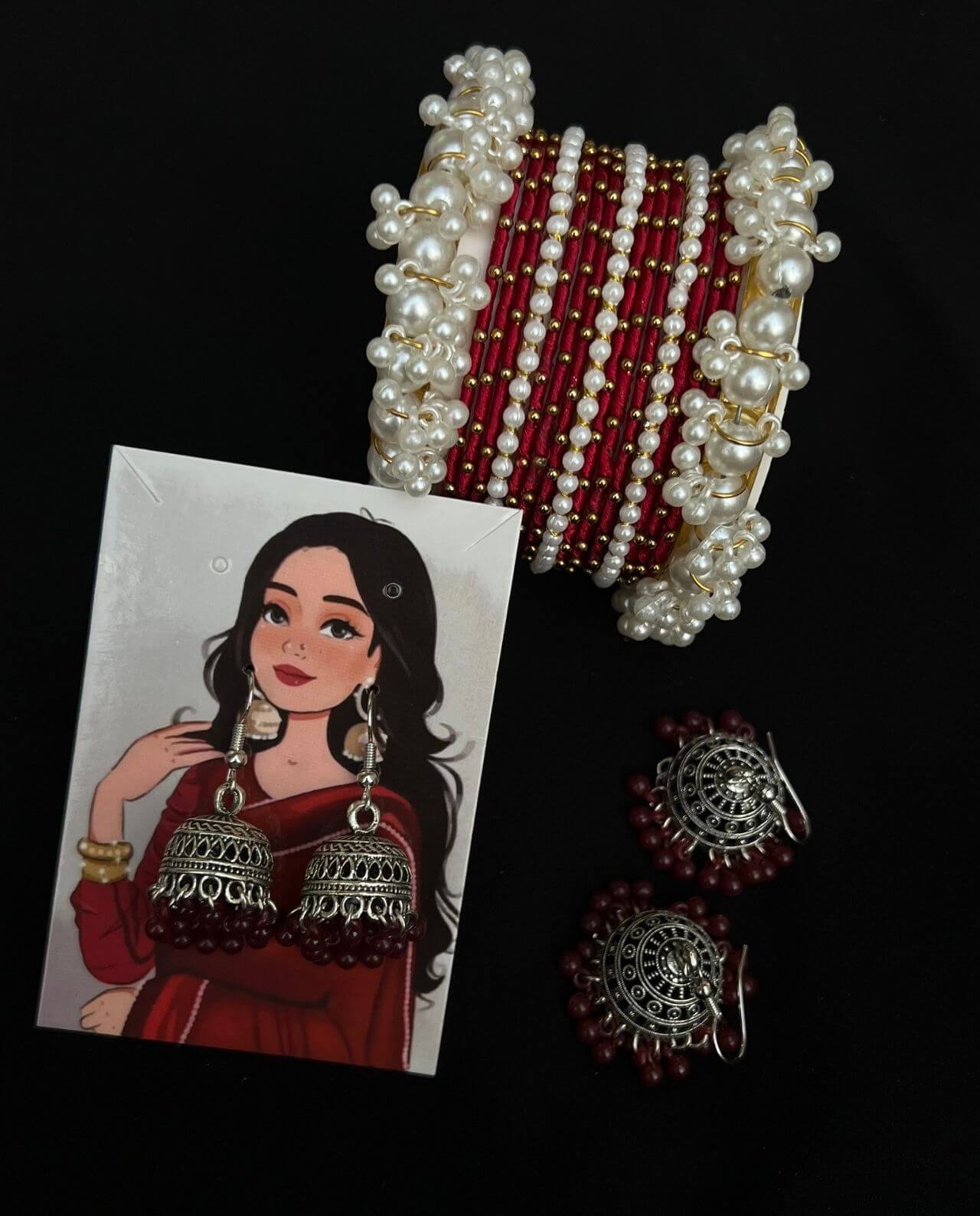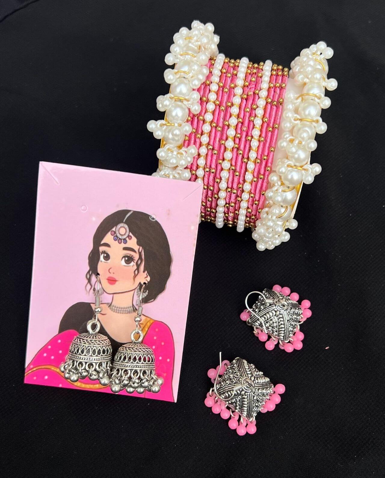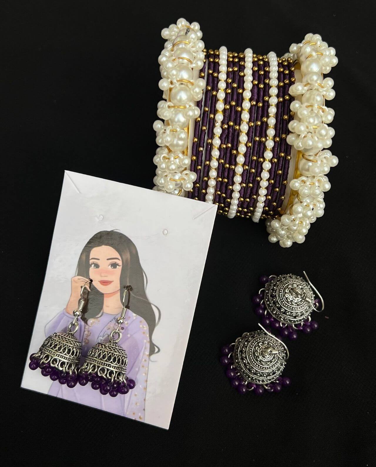 Includes one Jhumka & bangle set